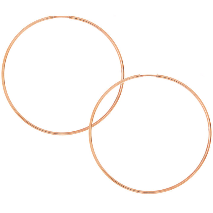 Our 65mm Rose Gold Hoop Earrings are made in sterling silver and dipped in 10K Rose Gold. They are hollow so they are light weight and comfortable to wear and the Rose Gold makes them beautifully feminine.