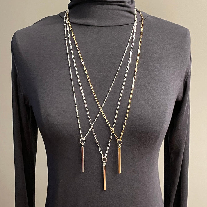 We've designed this with our Paperclip Chain in 30", 32" and 34" and added a chunky 2" sterling silver bar to provide a strong anchor.