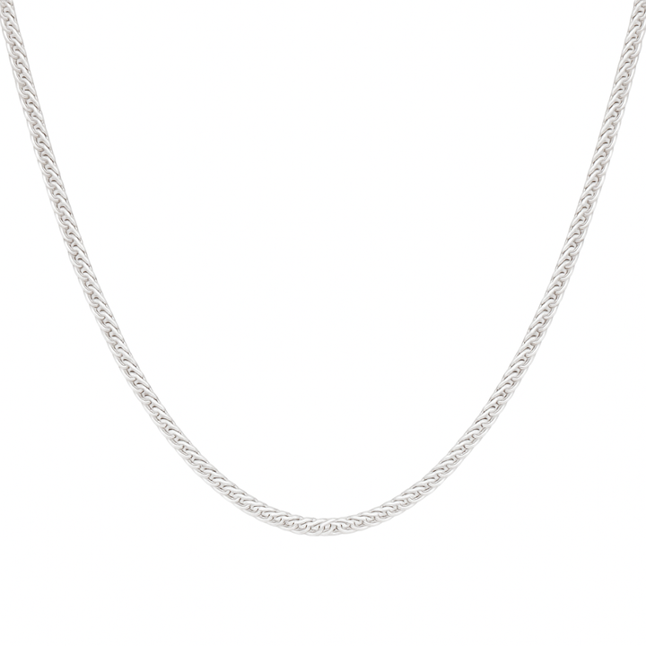 Achieve layered necklace greatness with this Franco Chain as the stand out chain, a.k.a. layer 2, in our effortless Layered Chain Reaction design.