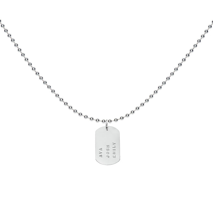 Peel Pendant on Thick Ball Chain features our sterling silver dog tag pendant on a bolder chain for a masculine look. Includes our Thick Ball chain; a classic choice.